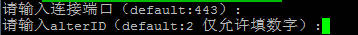 5.在提示 输入连接端口 和 alterID 时,可以直接回车,默认分别为443和2