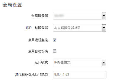 服务器添加完成后,通过这项设置使其生效。在下图的全局服务器中,选择刚才添加好的服务器。选择完成后保存并应用,然后全局域网就可以实现科学上网了,注意默认的IP路由模式下,全部国外流量都走通过SSR代理。