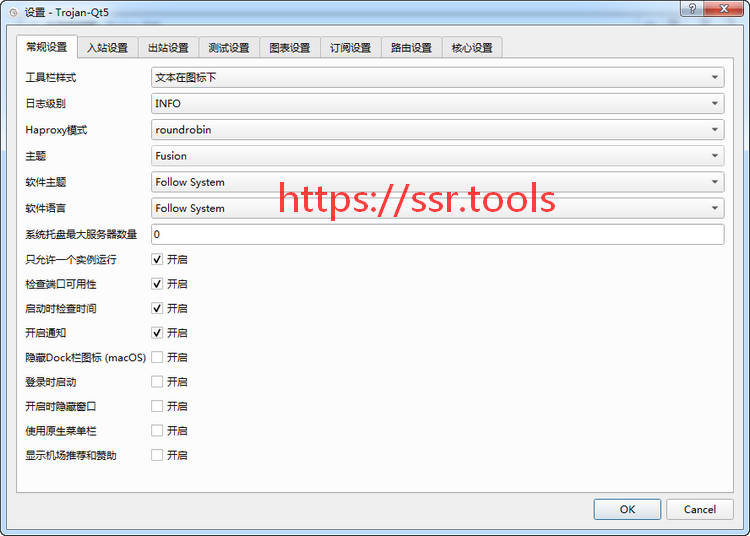 其它系统平台的Trojan-Qt5,界面功能与Windows客户端比较类似,可以参考上文介绍进行使用。