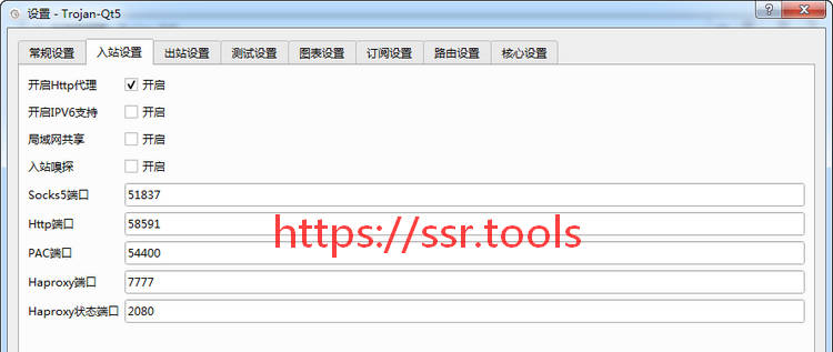 2.入站设置界面如下图所示,可以修改各个本地代理端口。