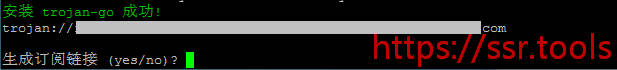 4.Trojan-Go安装成功后,会给出trojan://开头的连接参数,可用于客户端连接,将其复制到本地电脑备用。