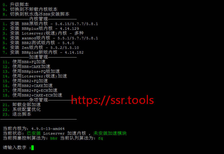- 安装TCP加速内核(BBR/锐速/Lotserver)