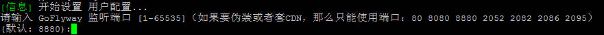 3.输入Goflyway的监听端口,考虑到后续的伪装网站以及CDN使用需求,建议将端口设置为80。