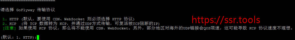 5.选择Goflyway的传输协议,直接回车键即可选择HTTP协议。