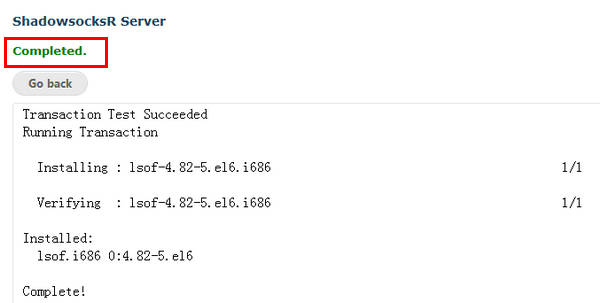 4.安装过程非常快,大概不到一分钟就好了,是真正的一键安装。提示Completed后,点击下图中的Go back按钮,进入详情页。