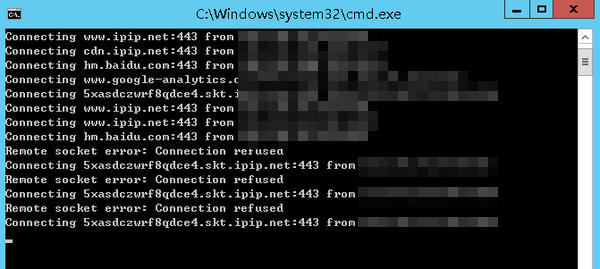 5.这时候就可以打开Shadowsocks客户端进行连接了,连接成功后,在使用过程中,CMD窗口会有相应的日志出现,如下图: