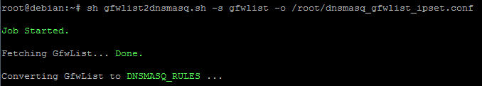 sh gfwlist2dnsmasq.sh -d 127.0.0.1 -p 5300 -s gfwlist -o /root/dnsmasq_gfwlist_ipset.conf |