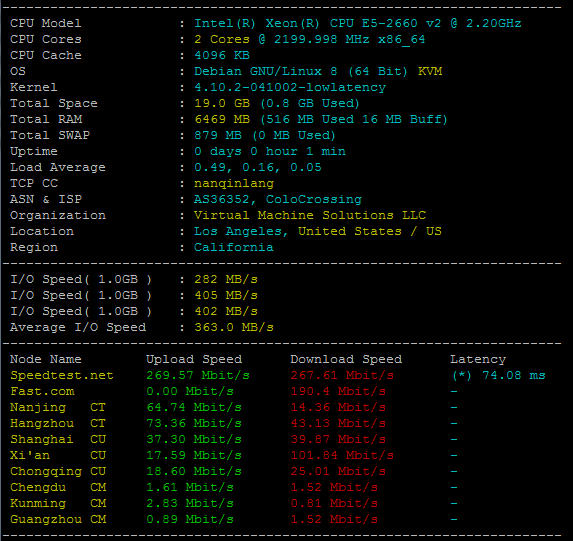 VPS服务器一键测试脚本,可以帮助我们快速了解服务器的具体配置,硬盘IO以及网络连接速度,非常实用。经过简单测试后,我们可以对Shadowsocks/SSR/V2ray的网络表现,有一个比较直观的预期。